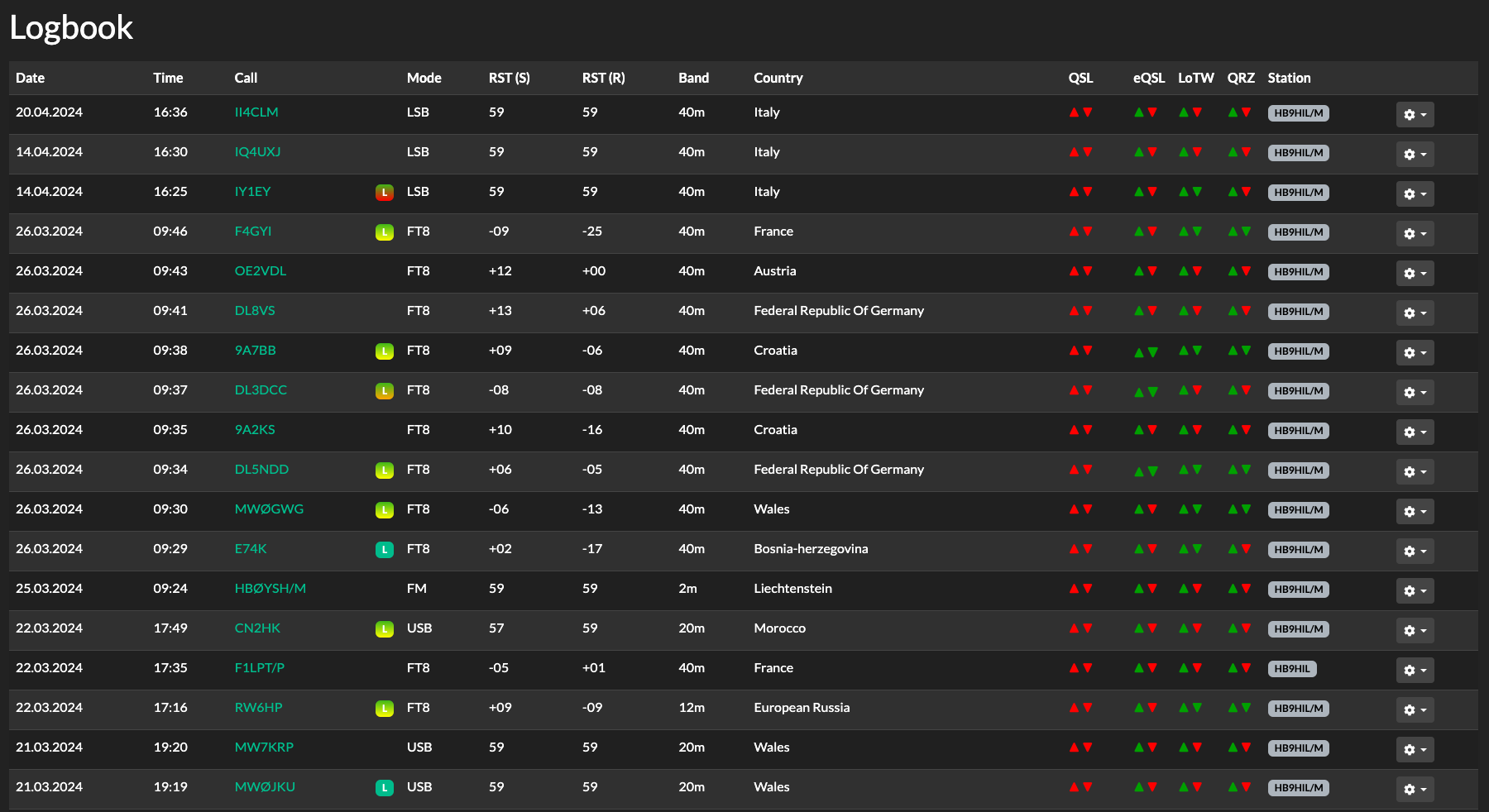 QSO’larınız otomatik olarak eQSL ve LotW ile onaylanır ve eQSL kartları WebUI üzerinden doğrudan görüntülenebilir.